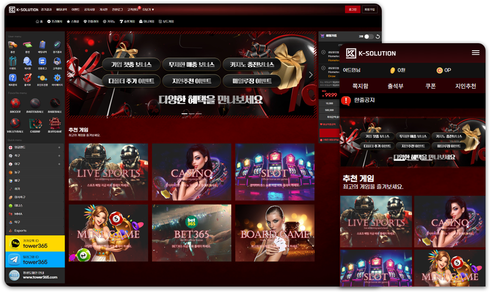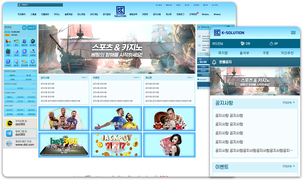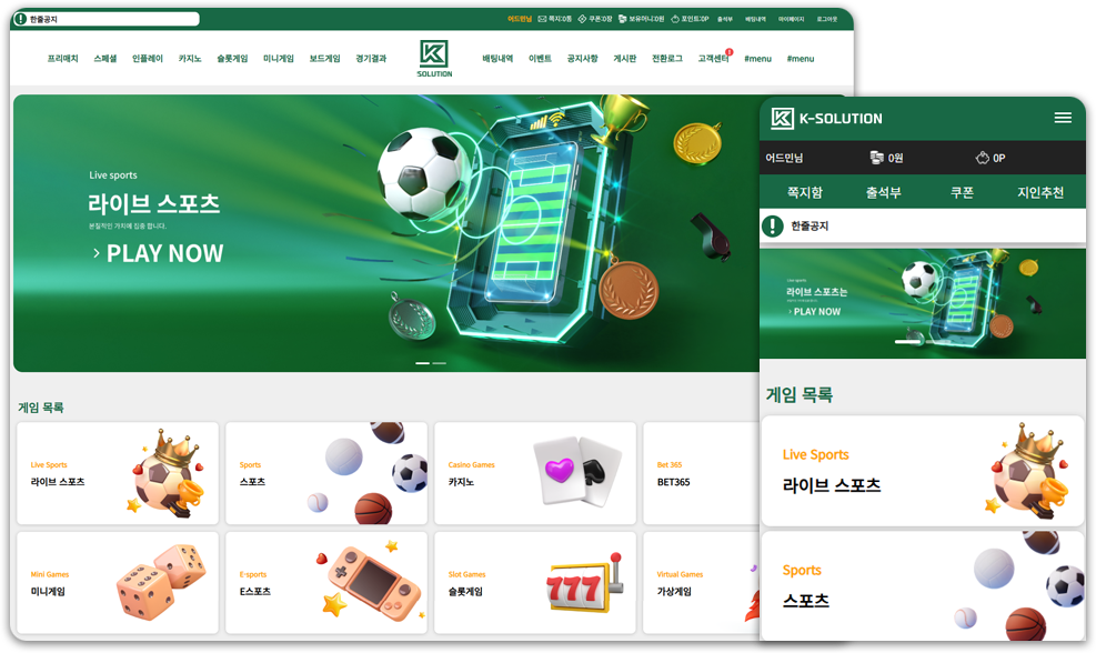 스포츠 + 카지노 + 슬롯 + 미니게임 + 보드게임